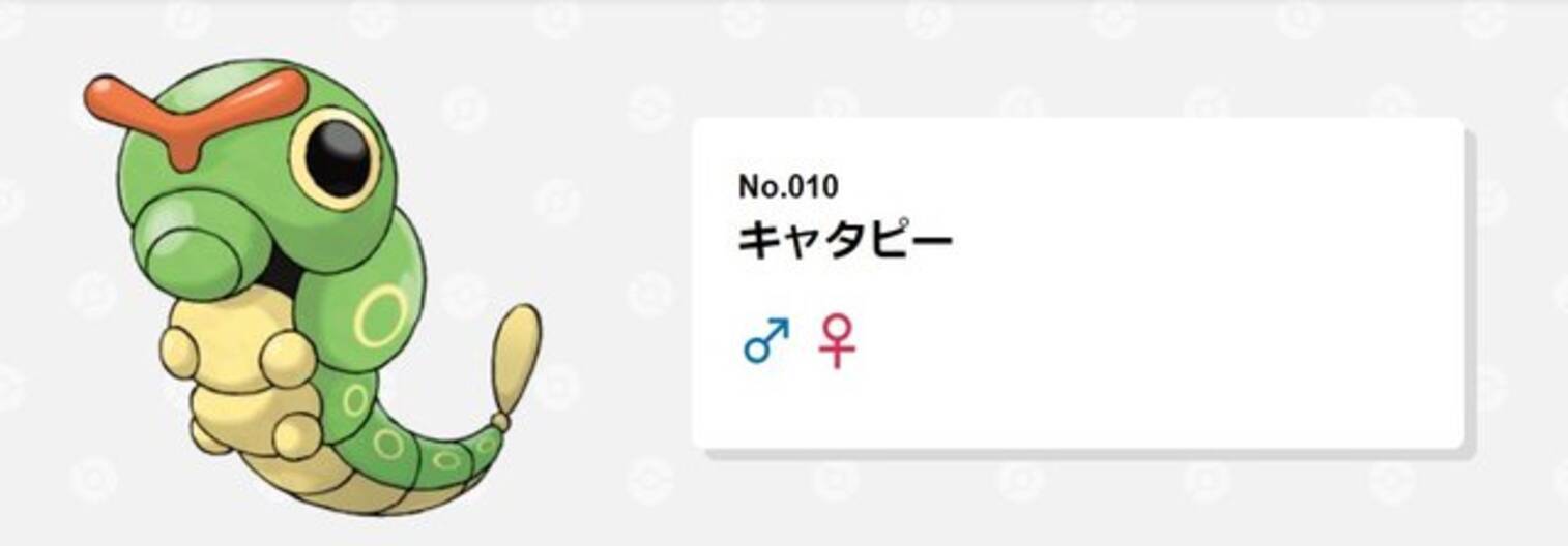 19年1月10日 やあ、ポケモンGOトレーナーのみんな! みんなが欲しくて欲しくてたまらない「 色違いポケモン 」が図鑑になったぞ!! キャタピー 今日は日比谷公園で3時間くらいしたら2匹目きたぁぁぁぁ!!!! クヌギダマとキャタピーの色違いは相変わらず来てくれませんでした( ・∇・) 04/09 2300キャタピーのまんまるお目々は"模様"だった! ? 4/ (水) 1130 配信 (写真:インサイド) 『ポケットモンスター 赤・緑』より登場して
